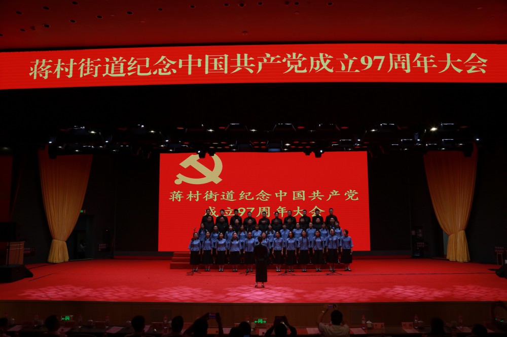 6月30日上午,蒋村街道纪念建党97周年党员大会在西湖区文体中心千人会场举行,蓝天下传媒党支部全体成员出席会议,并进行了合唱大赛优秀作品的展演。