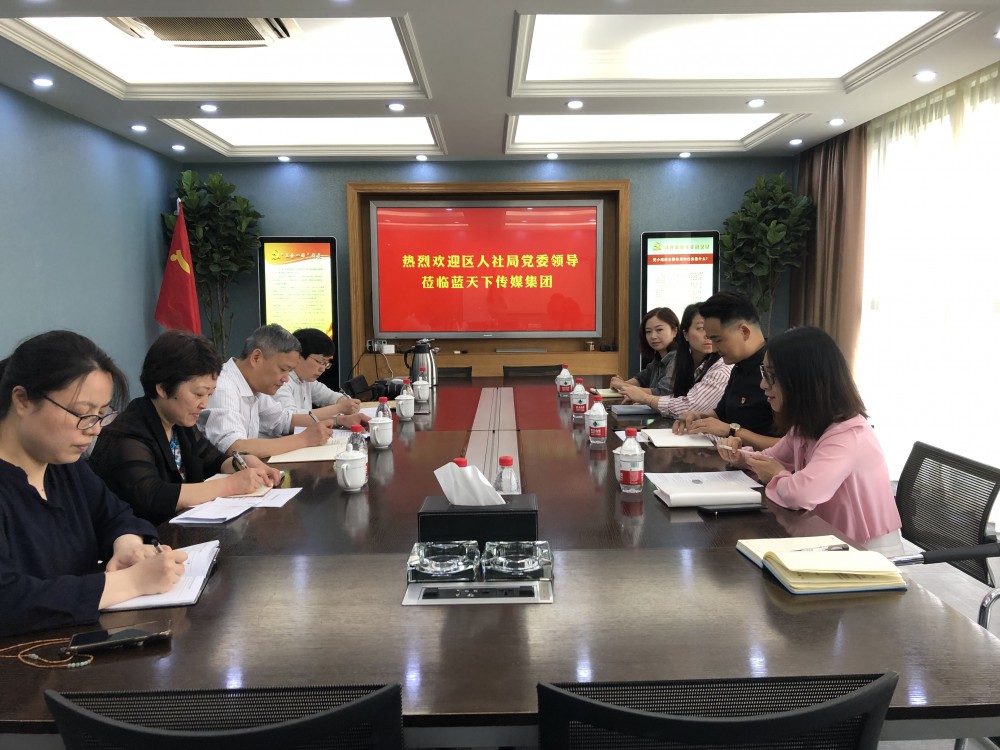 4月25日,“联企结对争双强”党建座谈会在集团党建活动室召开,与会人员有杭州市西湖区委组织部副部长、西湖区人社局党委书记、局长马利军,西湖区人社局党委副书记、副局长,机关党委书记冯毅,西湖区人社局办公室主任陈强音,西湖区人社局机关党委副书记徐丽君以及蓝天下传媒党支部成员等人。