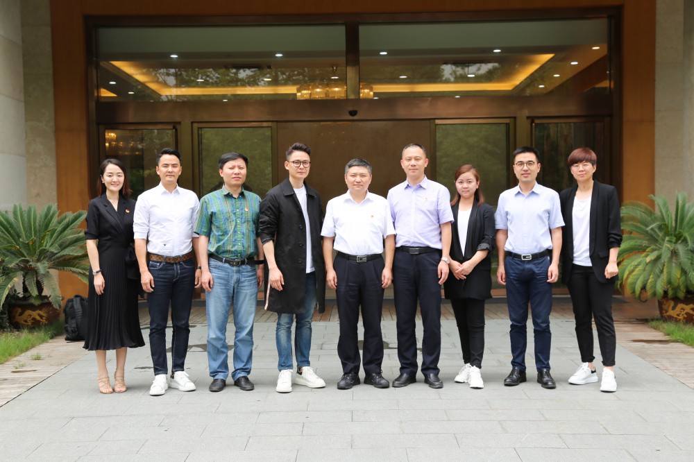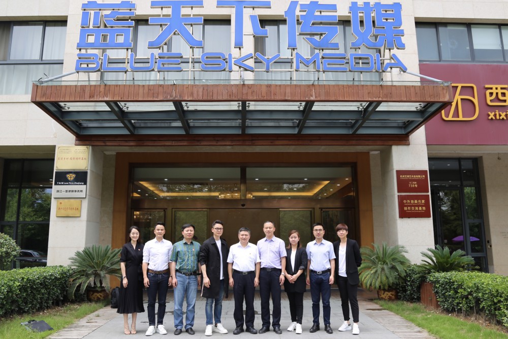 6月26日,为深入开展、全力落实“三服务”活动,共青团浙江省委书记朱林森(中)、共青团杭州市委书记马利阳(右四)等领导来到蓝天下传媒集团考察调研。